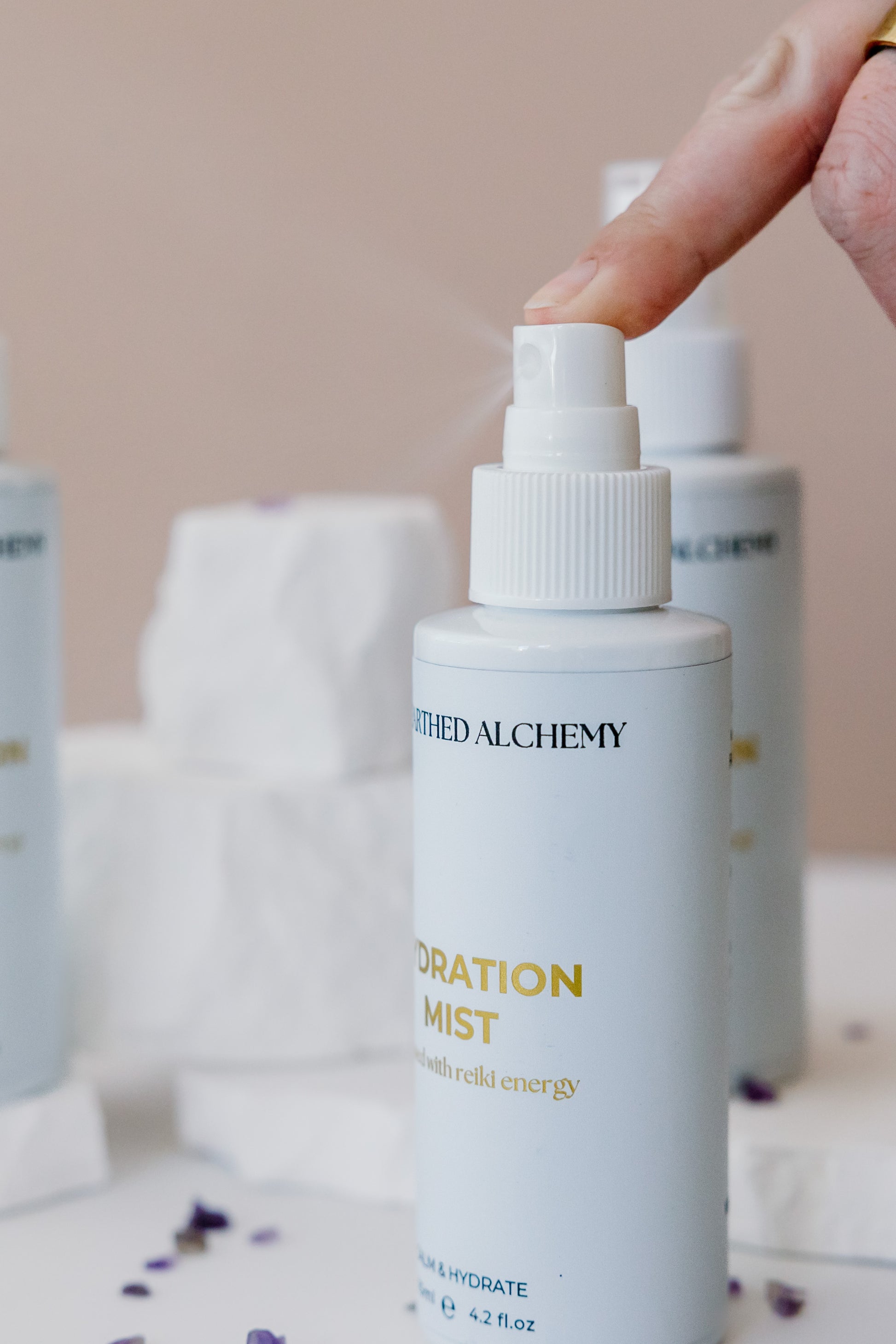 A sacred veil of nourishment for both skin and spirit. Our Hydration Mist is a Reiki-infused botanical elixir, created to soothe, balance, and replenish with every ethereal spritz.